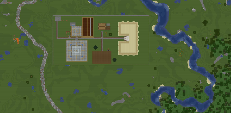 Fast der ganze Berg ist benutzt (sehr verzweigt gebaut ) es geht auch etwas über denn Berg hinaus und es ist durch eine Kaktus Farm ist zum bedrock ein tunnel nach unten auf dem Berg ist auch eine kleine Sägemühle das beste wäre also denn Berg und ein teil der Umgebung zu kopieren