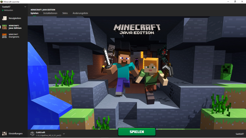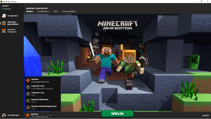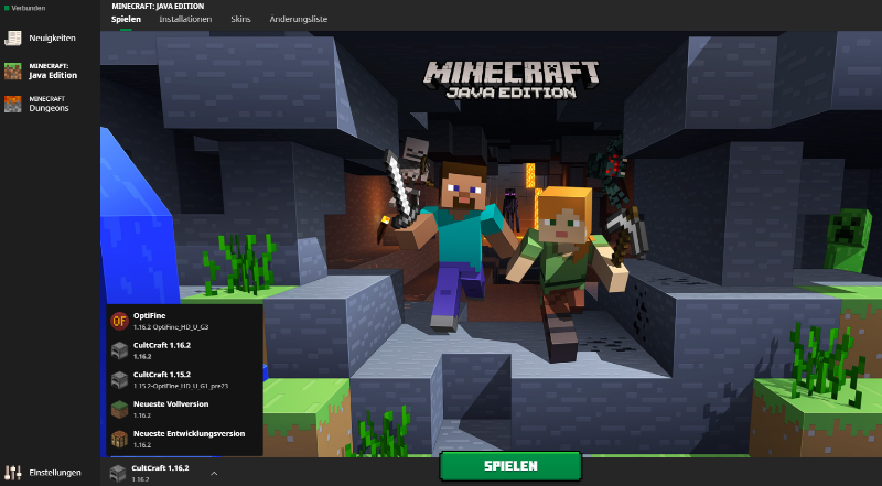- Dann starte in deinem Minecraft Launcher nun das Profil mit der installierten Optifine Version. und klicke wieder auf Spielen, anschließend kannst du wieder wie gewohnt CultCraft betreten!