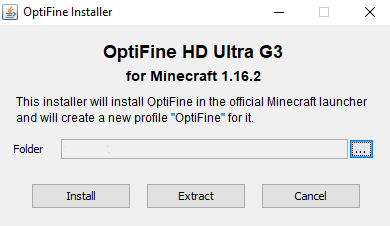 - Optifine installiert sich mit einem Doppelklick auf die heruntergeladene Datei. Dann öffnet sich folgendes Fenster: