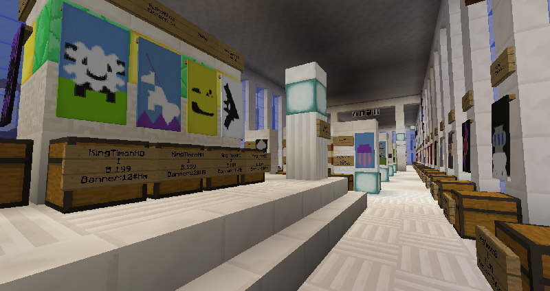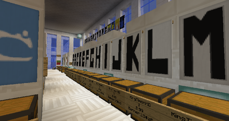 Verkauft werden nicht nur Flaggen wie die von Österreich, Deutschland, Schweiz, Brasilien, USA, Großbritannien, EU und viele weitere sondern auch Buchstaben auf Bannern, mit denen ihr z.B. Häuser beschriften oder euren Namen als Schriftzug aufstellen könnt. Des weiteren gibt es Motive wie Hase, Pilz, Hund, Schüssel Reis, Herz, Kürbis, Geschenk, Katze, Himmel, Sonnenuntergang, Ananas, Gameboy, Skelettkönig, Lichtschwert und Piktogramme wie: Rauchen verboten, Ampel, ... An Itemmotiven bieten wir z.B. Amboss, Pickaxe, Axt, Torte, Knochen und vieles mehr.