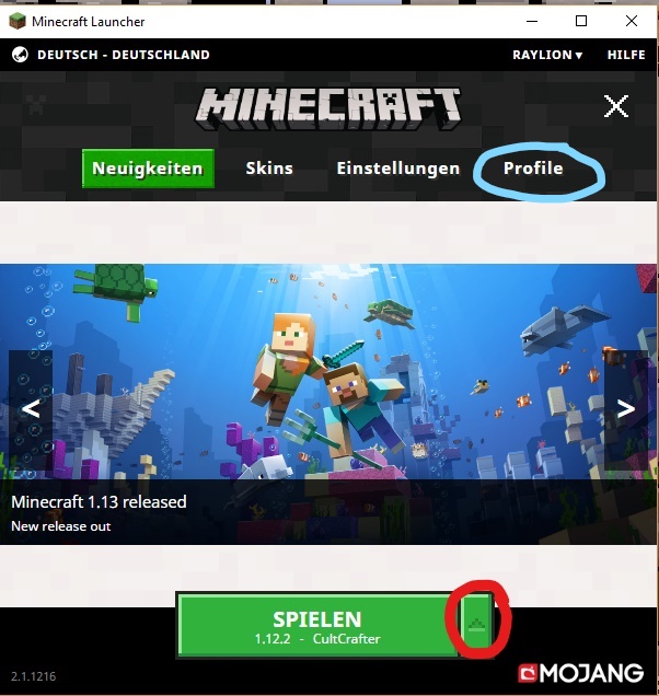 Raylion, deine Erklärung ist sicher nicht komplett falsch, allerdings findest du bei dem Reiter neben dem Spielenknopf nur deine gespeicherten Profile. Wenn allerdings nur das Standard-Profil existiert, welches automatisch die neueste Version setzt, dann wirst du auf diese Weise auch kein Profil mit der 1.12 finden können.